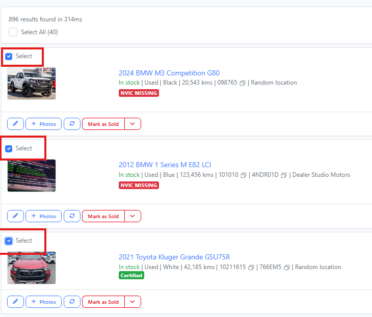 Once you have located the cars you wish to print out, tick the box in the top left of their listing that reads "Select for print".