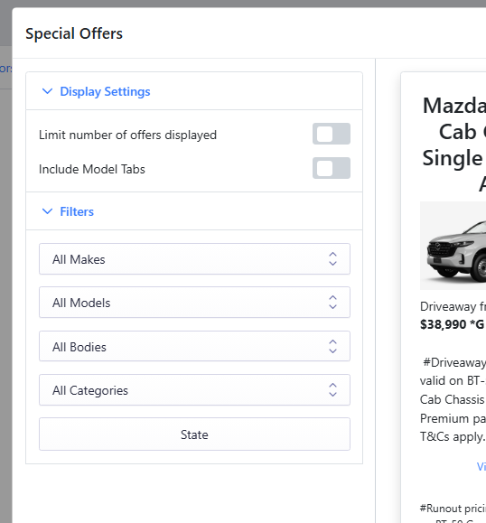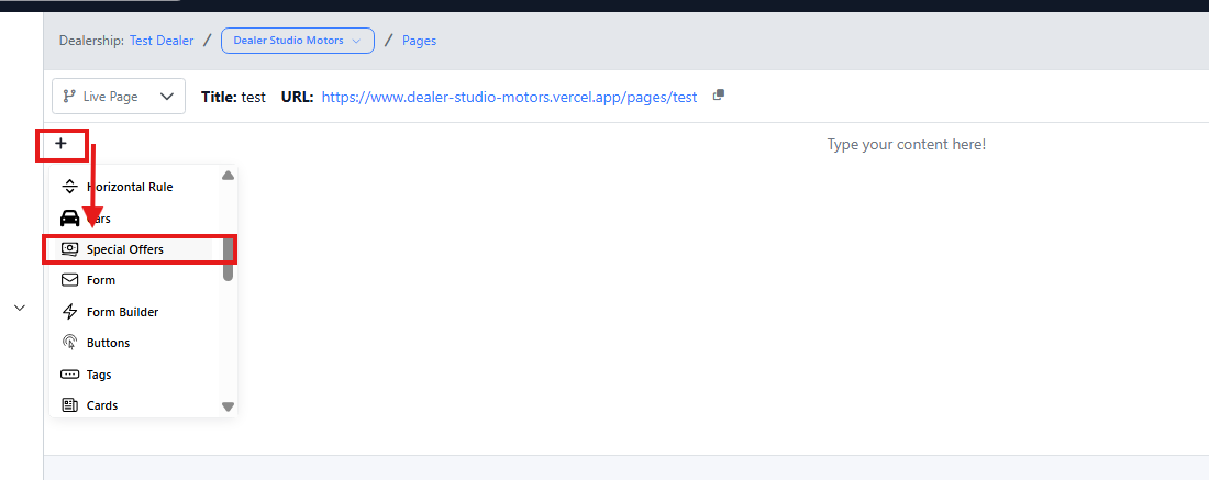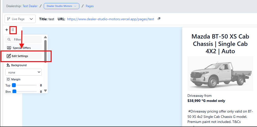 Using the Page Editor, you can easily upload images, update text, and link your offers to relevant vehicle listings or enquiry forms.