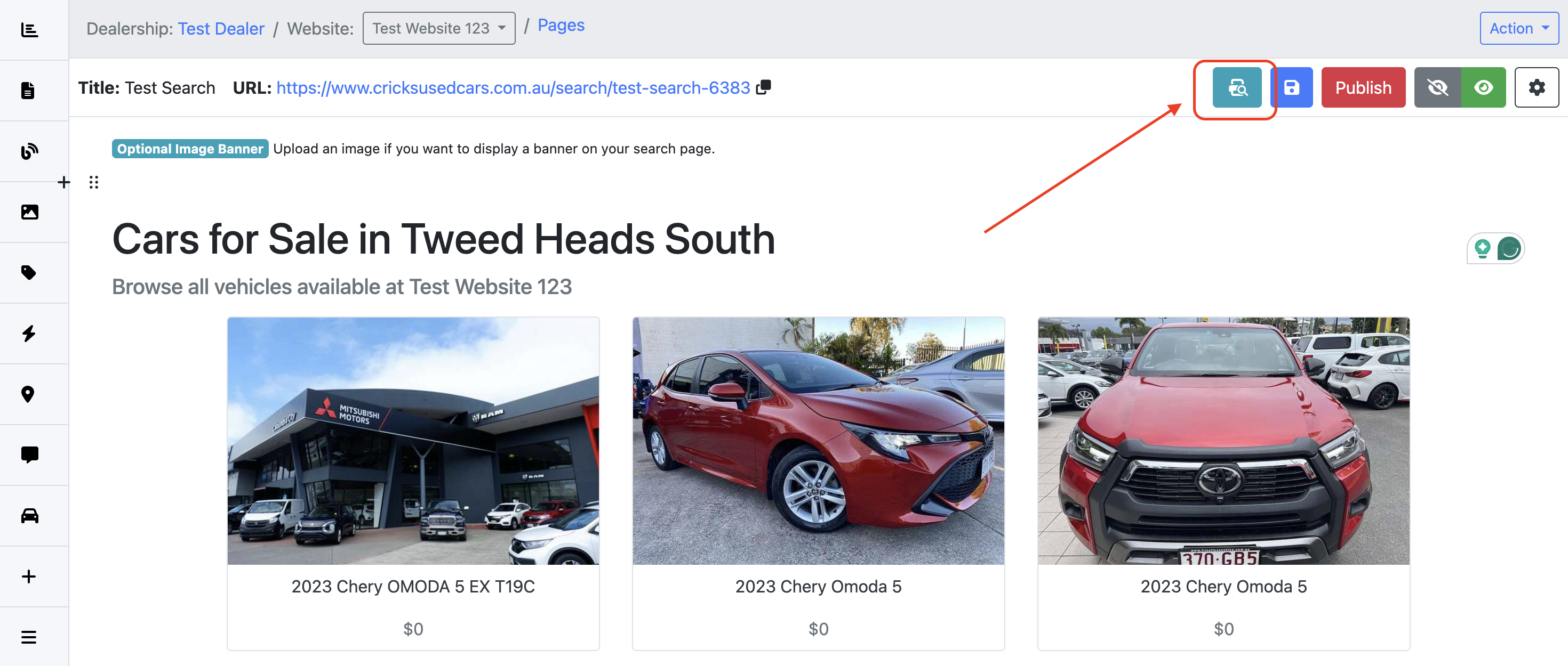 Step 1: On the Dealership Dashboard, select Websites