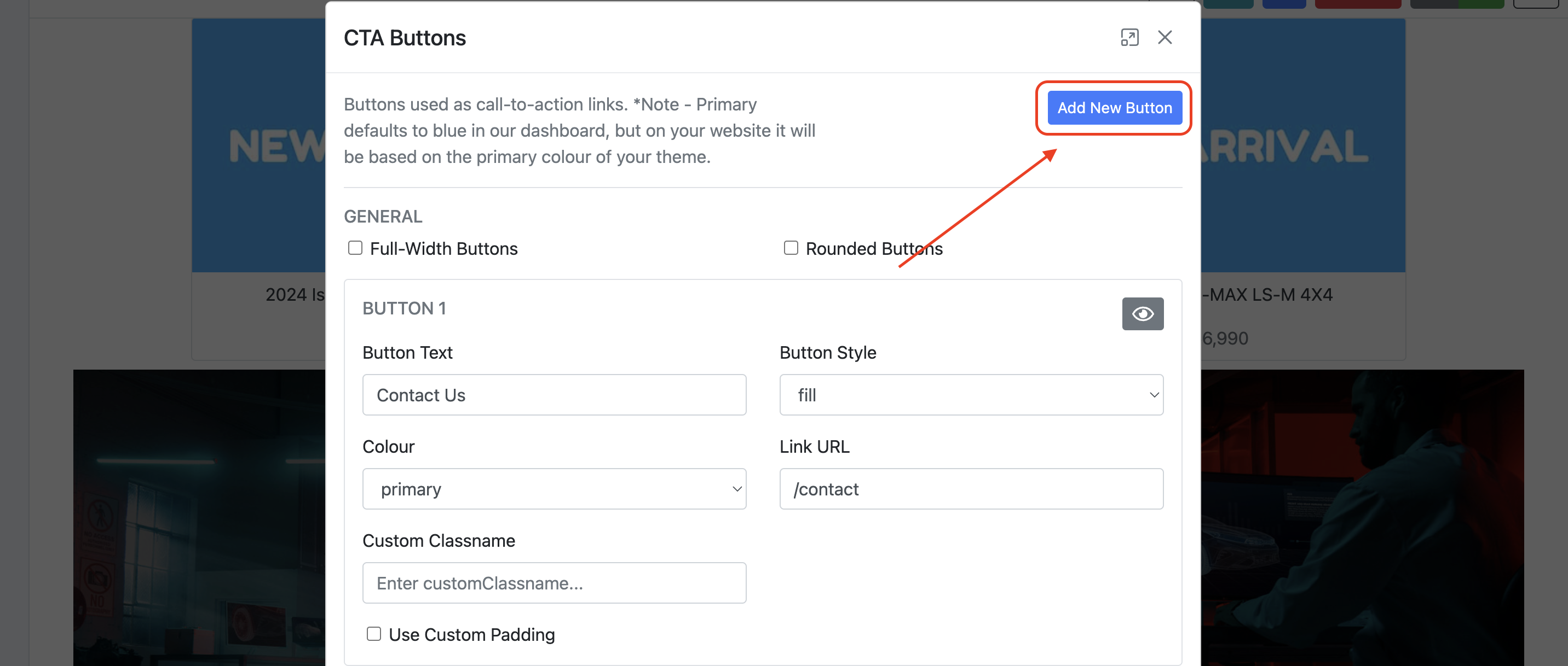 From here you are able to add multiple buttons as well as adjust the text, colour, classname, style and link URL.