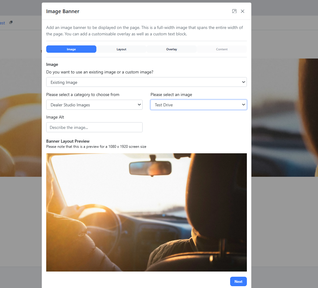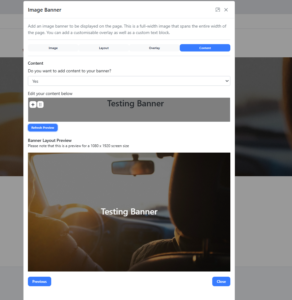 A box will open to customise your banner. You will be directed to select either an existing image or a custom image.