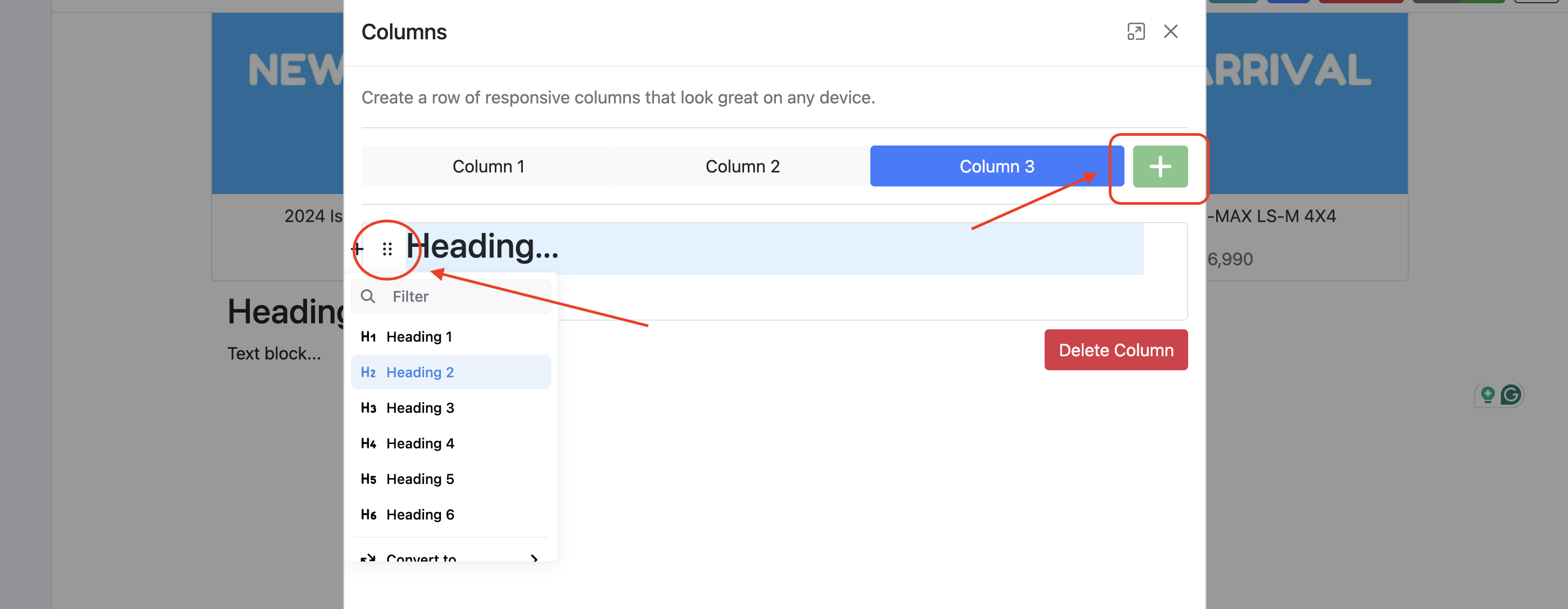 Follow the steps below to learn how to add and customise columns effectively on your pages.