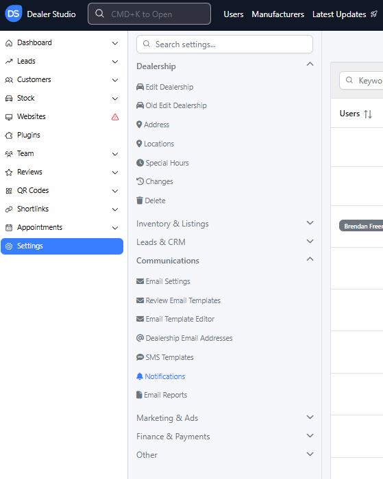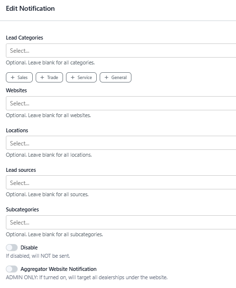 Once Lead Notifications have been created in Dealer Studio, you may need to update them—such as adding more users, adjusting lead categories, changing locations/websites, or temporarily disabling a notification.