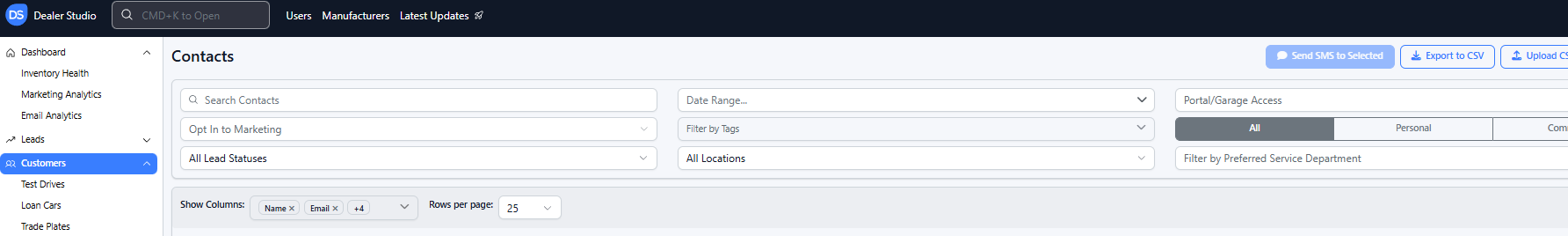 The Customers Dashboard is your central hub for managing customer information, test drives, car loans, and trade plates. Use the filters, tools, and structured pages to keep your dealership’s customer data clean, organized, and actionable.