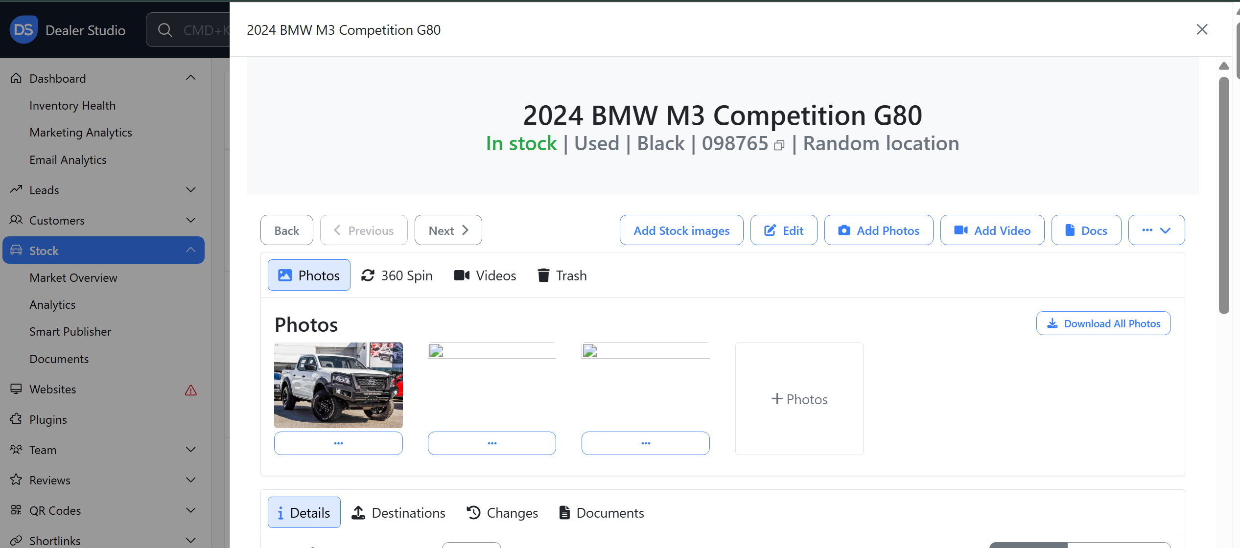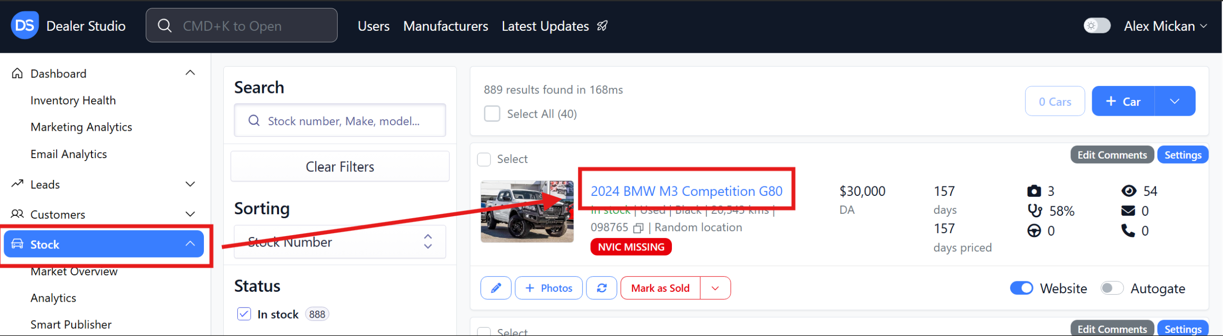 Step 1: On the Dealership Dashboard, select Stock