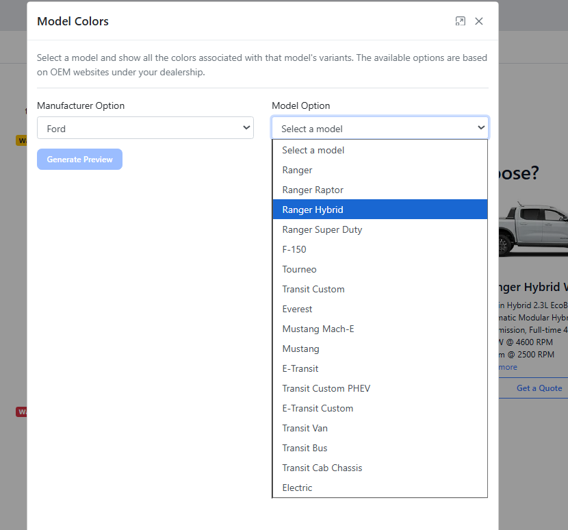Models - Component that has all vehicles under a manufacturerModel Variants - Select Model and Manufacturer