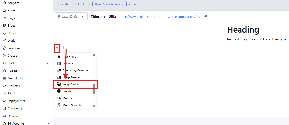 Follow the steps below to learn how to add and customise an Image Slider effectively on your pages.
