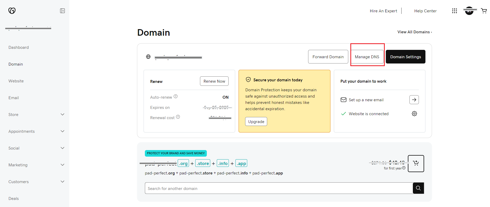 Click DNS next to your domain