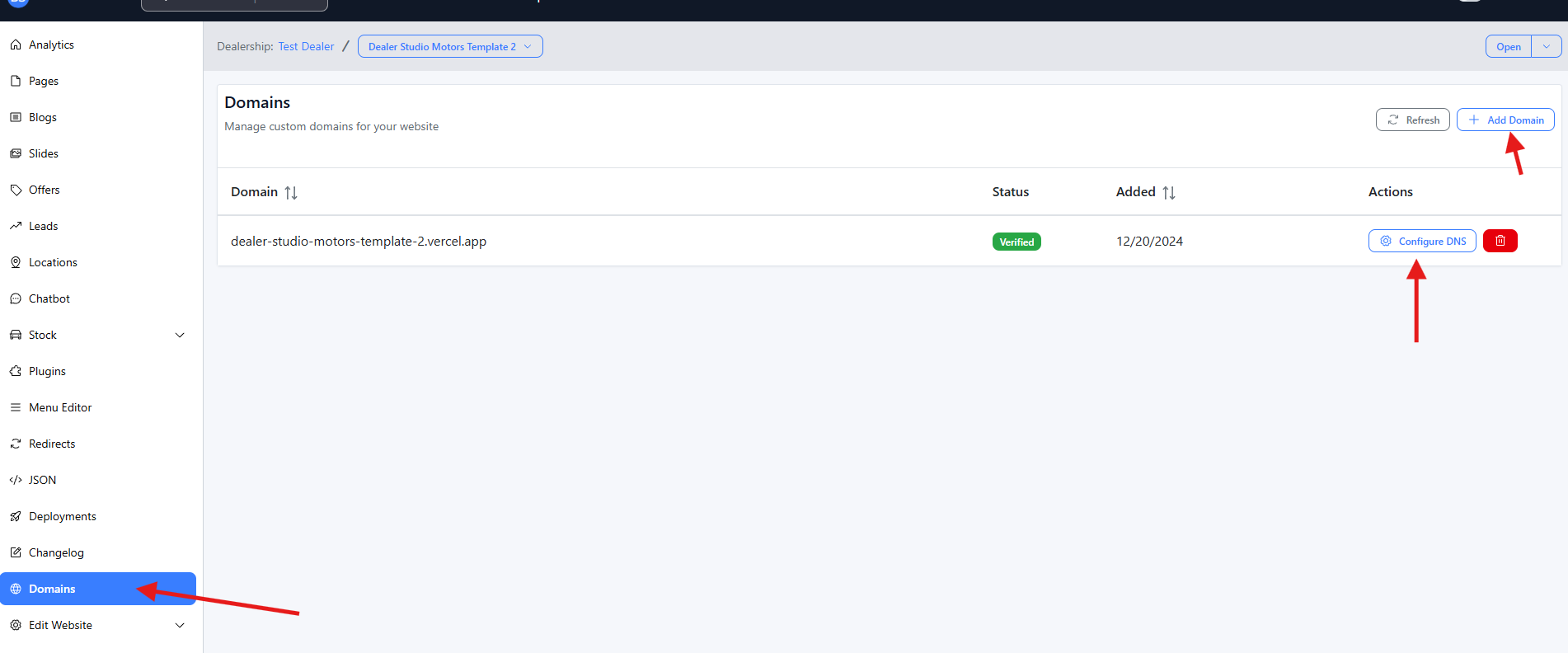 Part 1: Add Your Domain in Dealer Studio