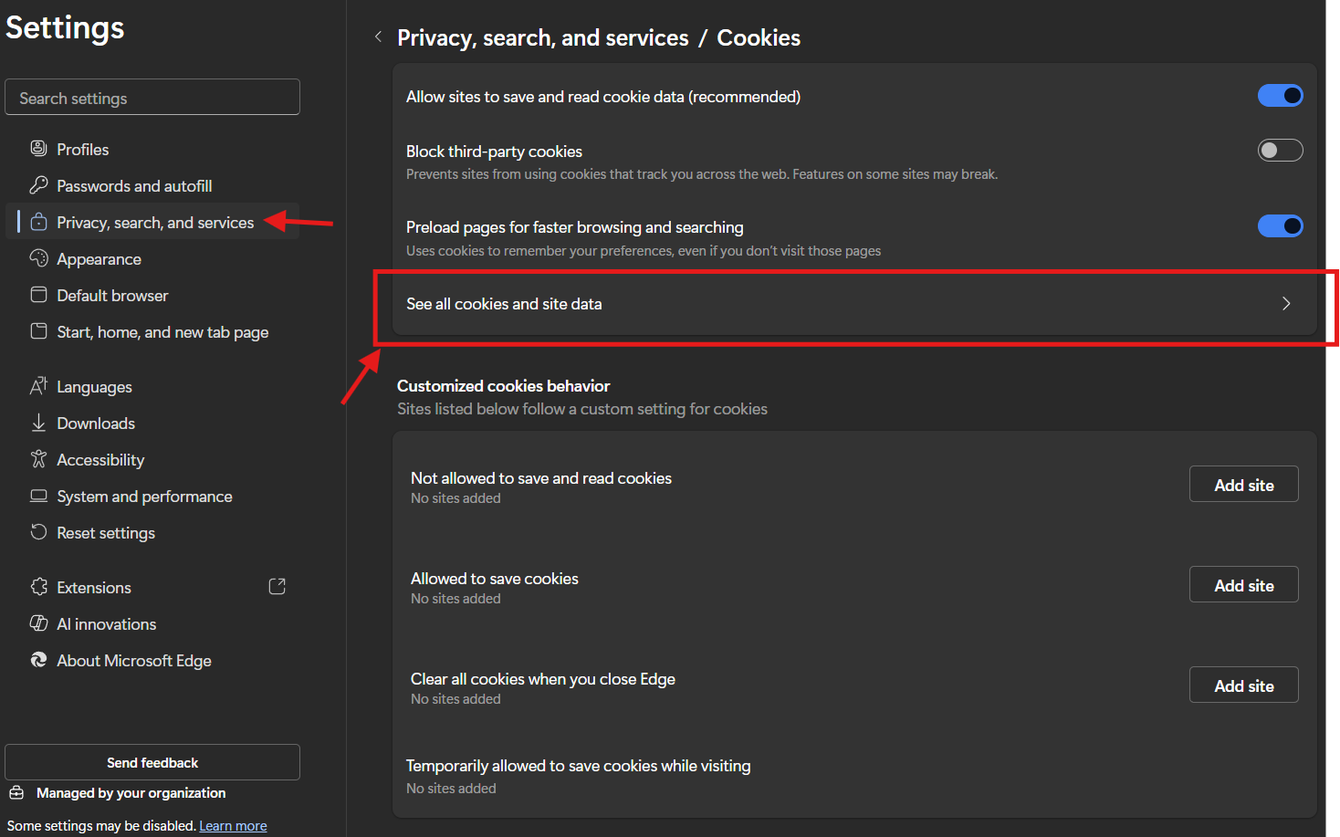 Microsoft Edge: Clear Cache & Cookies (Site-Specific)